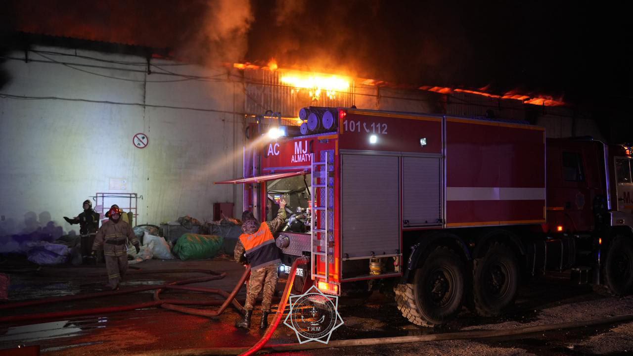 В Алматы произошёл крупный пожар на складе, расположенном вдоль шоссе Северное кольцо. Об этом сообщили в пресс-службе МЧС Республики Казахстан.