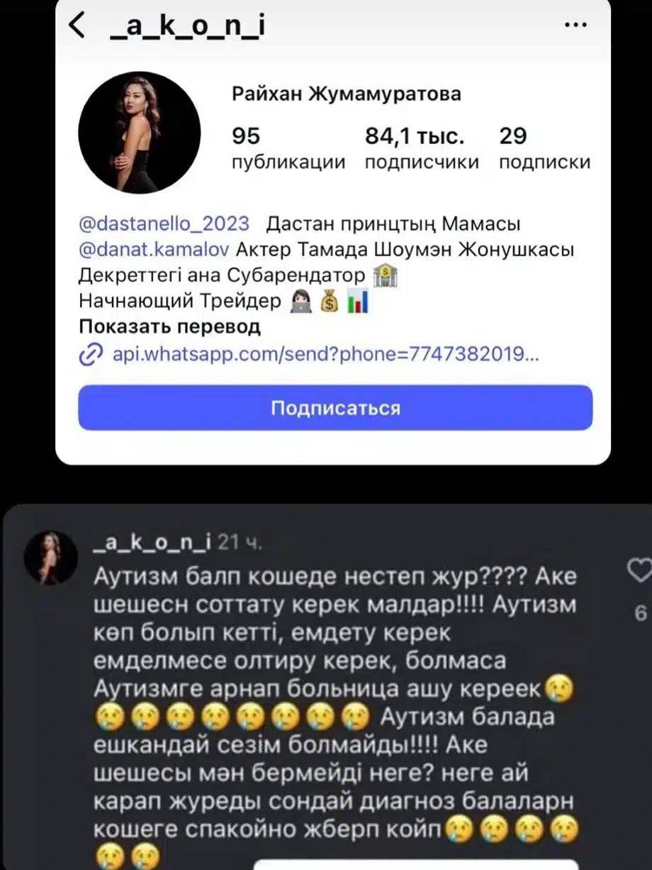«Аутистов стало слишком много, их нужно лечить, если не вылечатся — убивать… У ребёнка с аутизмом нет никаких чувств», — написала Жумамуратова.